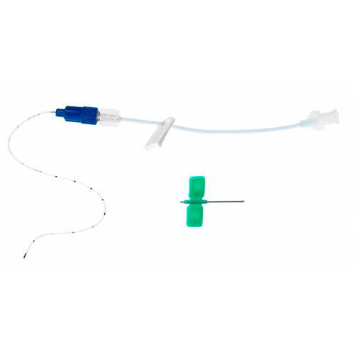 Catéter central de inserción periférica indicado para tratamientos prolongados, que permite un acceso venoso seguro y de larga duración.